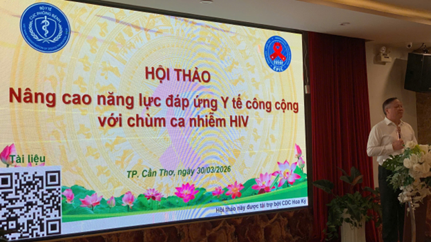 Ngày 30/3/2026, tại thành phố Cần Thơ, Cục Phòng bệnh, Bộ Y tế đã tổ chức hội thảo nâng cao năng lực đáp ứng y tế công cộng với chùm ca nhiễm HIV (PHCR) với sự tham gia của đại diện các đơn vị trung ương, ông Trần Văn Dũng – Phó Giám đốc Sở Y tế thành phố Cần Thơ, Trung tâm Kiểm soát bệnh tật (CDC) 12 tỉnh, thành phố của Dự án EPIC và các đối tác liên quan.